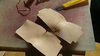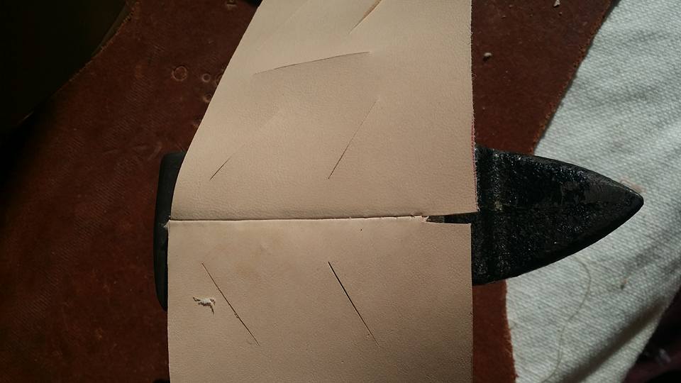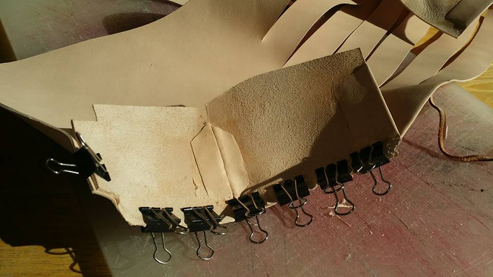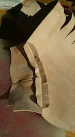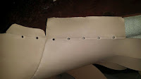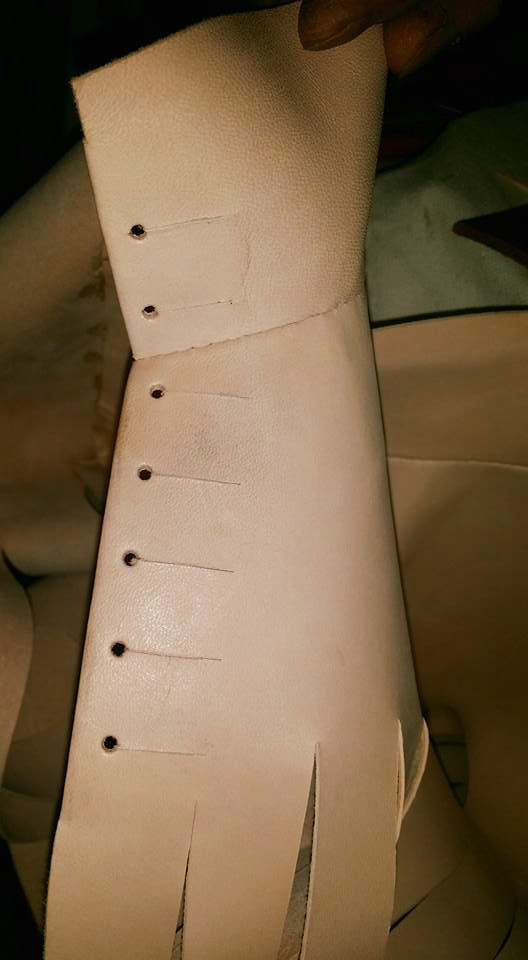 Stitching on the taps was the most challenging as I had to go through two layers for each tab as well as the jerkin shoulder. Each stitch had to penetrate 5 layers of leather. I skived the edges to thin out the stitching area but this was still the toughest portion.