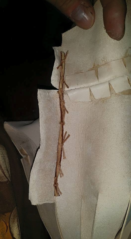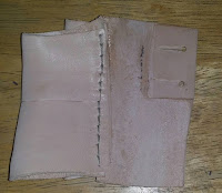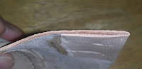 Prototype of the skieved edge, button hole and stitching through 5 layers of leather.