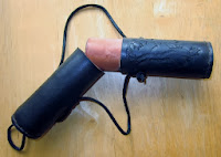 Once satisfied with the tooling I wrapped the piece with paper and then used some painter's tape to hold it in place while it dried. The penner is made of two layers. The center layer was already constructed. See previous blog entry (Penner) for further details on the manner in which it was created.